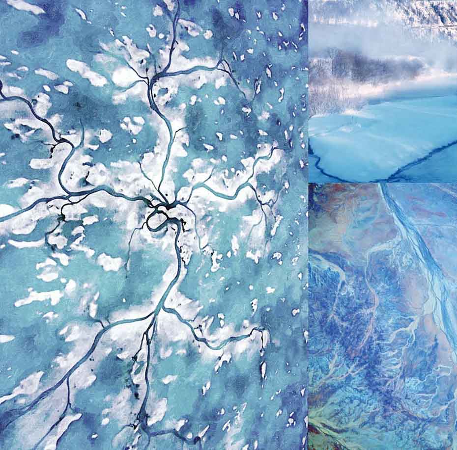 设计来源:灵感来源于地表径流的纹理,不断蔓延的河流分支,融合交汇,呈现出多彩的融合,蕴感十足。色调呈蓝紫色,泛着微微的绿色,在贴近自然的同时更显艺术美感。适合营造现代时尚的艺术空间。
